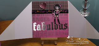 Great card Marie, I love the way it folds and opens to reveal a right little rock chick LOL. Looks fab in pink and black. Hugs, Claire x